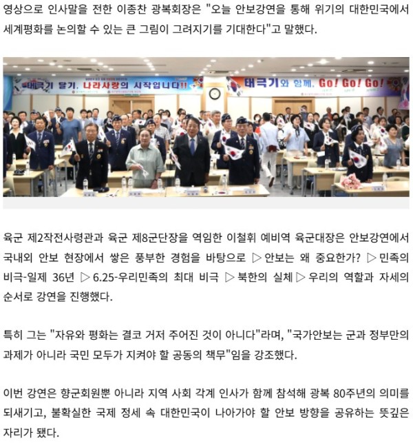 이철휘 예비역 육군대장 특별 강연…'태극기와 함께 GO!GO!GO! 캠페인' 실시