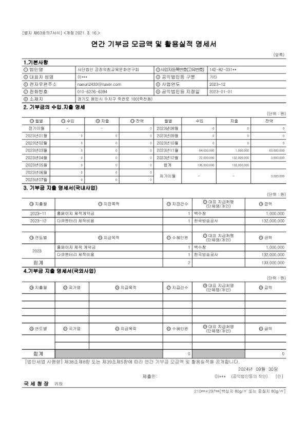 기부금 모금액 활용실적 공개 (2023년 귀속) 페이지 정보 작성자 최고관리자 작성일 24-09-30 13:36 조회 228회 댓글 0건 본문 이전글6. 25 참전용사 초청 보훈 행사 다음글2024년 종교계 문화예술 프로그램 지방보조금 사업자 선정 목록 댓글목록 댓글목록 등록된 댓글이 없습니다.