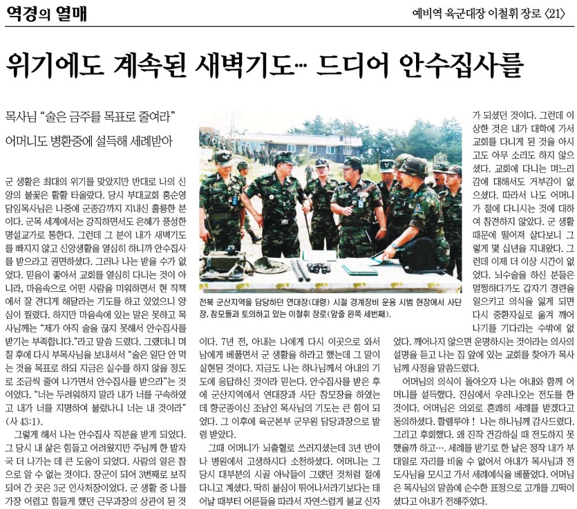 국민일보「역경의 열매」이철휘 예비역 육군 대장 편 21회분 기사입니다.