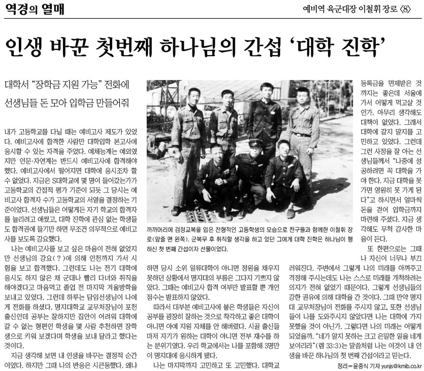 ㅇ 기사제목 : <8> 인생 바꾼 첫번째 하나님의 간섭 "대학 진학"