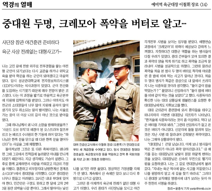 상하좌우 소통 국민일보「역경의 열매」<14> 중대원 두명, 크레모아 폭약을 버터로 알고… (2011.12.14)