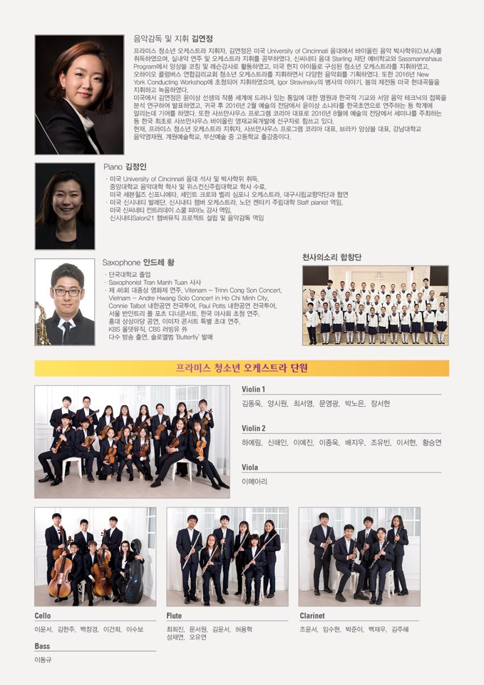 지역활동봉사 프라미스 청소년 오케스트라 11회 정기연주회 페이지 정보 작성자 마에스트로 작성일 24-03-05 18:19 조회 1,951회 댓글 0건 본문 프라미스 청소년 오케스트라 11회 정기연주회 이전글프라미스 청소년 오케스트라 12회 정기연주회 다음글천사의소리 합창단 제 12회 정기연주회 목록 댓글목록 댓글목록 등록된 댓글이 없습니다.