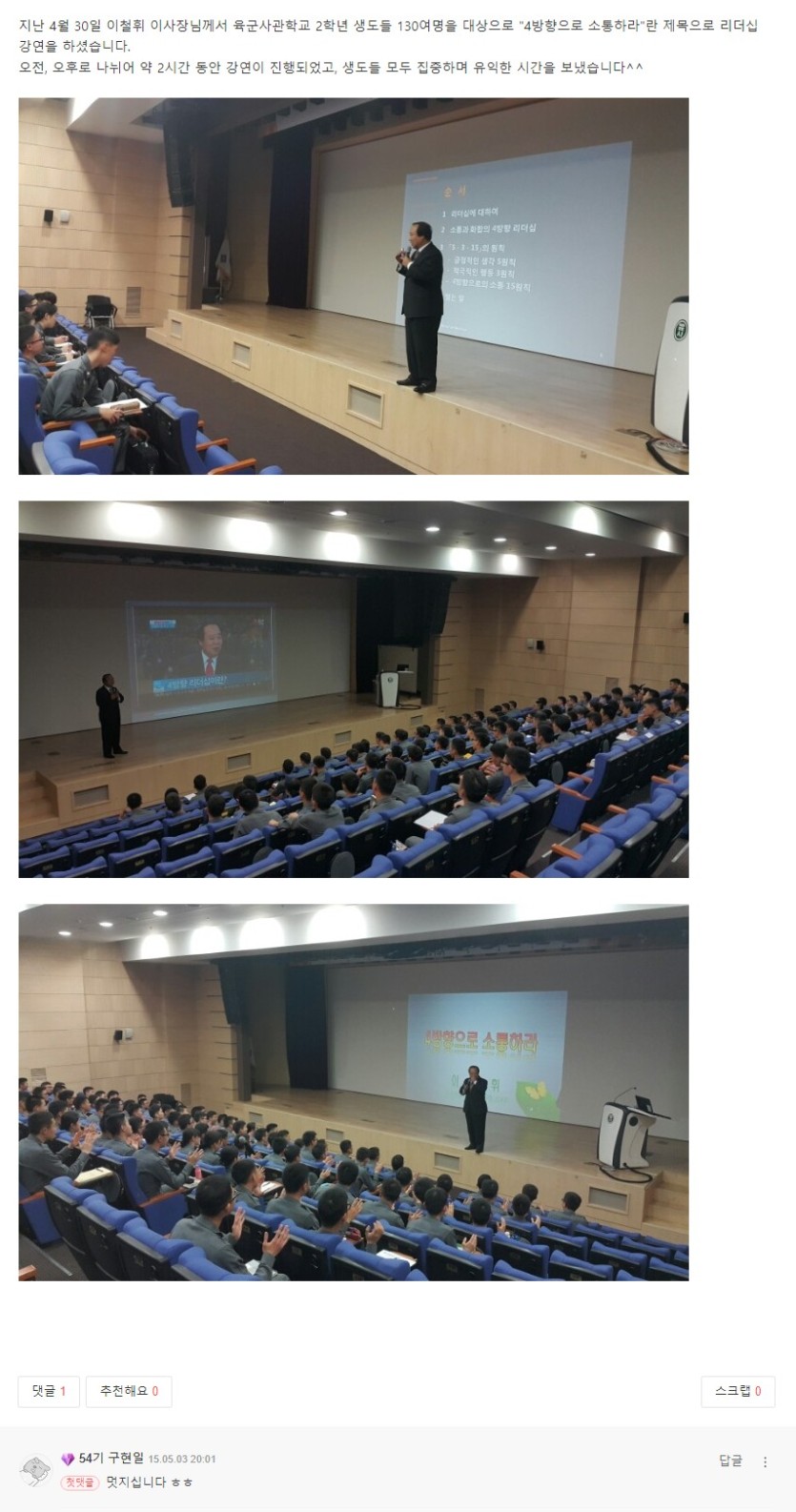 교육지원 [강연현장] 2015.4.30 육군사관학교 강연 (2015.05.02)