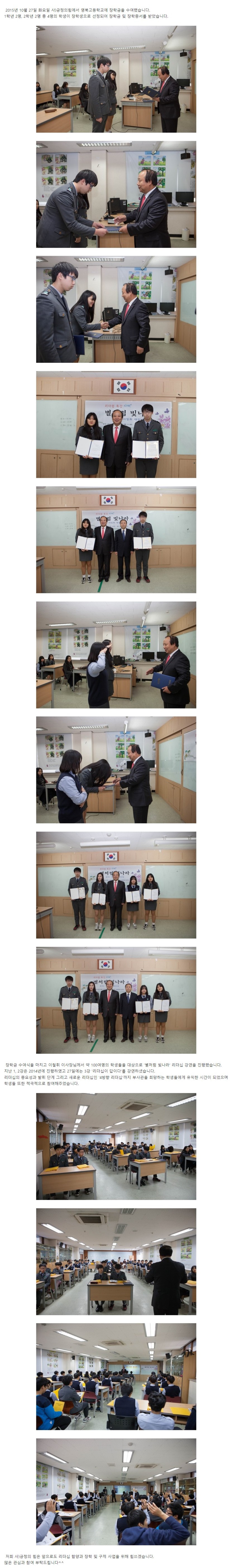 교육지원 [강연현장] 2015.10.27 영북고 장학금 수여 및 리더십 강연 (2015.10.28)