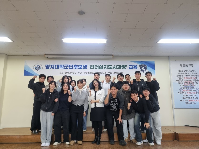 리더십 자격증 교육 명지대 학군단 리더십자격증 수료 페이지 정보 작성자 최고관리자 작성일 25-12-24 13:51 조회 447회 댓글 0건 본문 2025년 12월 17일 ~ 12월 19일까지 명지대 학군단 대상으로 20명에게 리더십자격증을 수료하였습니다.대학 선배인 이인구 강사가 첫날, 특강을 해주신 김승남 회장님이 둘째날 점심으로 섬겨주셨습니다. 다음글대진대 학군단 리더십자격증 수료 검색 목록 댓글목록 댓글목록 등록된 댓글이 없습니다.
