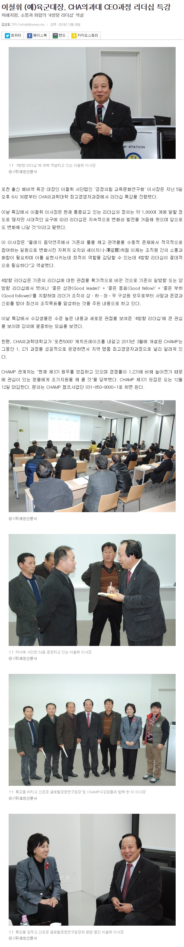 2013년 3월에 개설된 포천 지역 명품 최고경영자과정으로