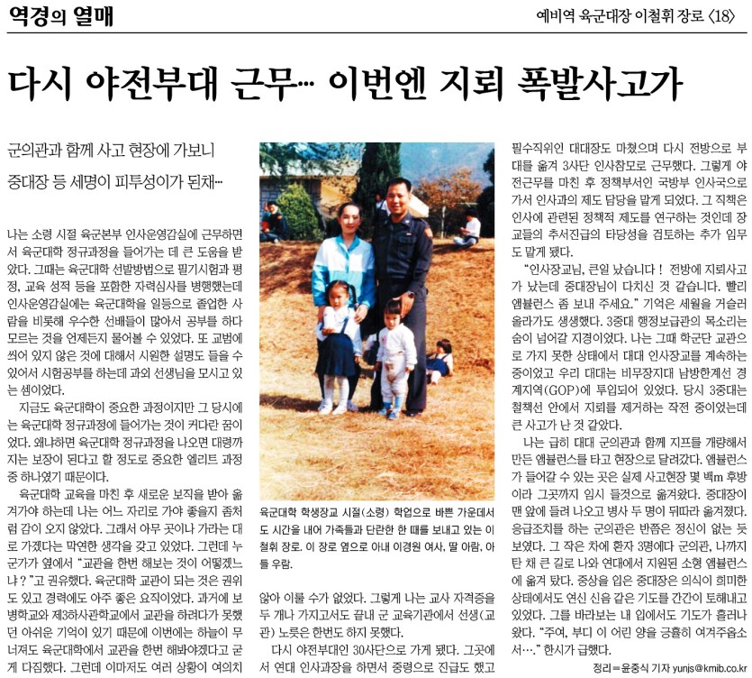 상하좌우 소통 국민일보「역경의 열매」<18> 불의의 지뢰폭발… 부상자 후송하며 간절한 기도 (2011.12.20)