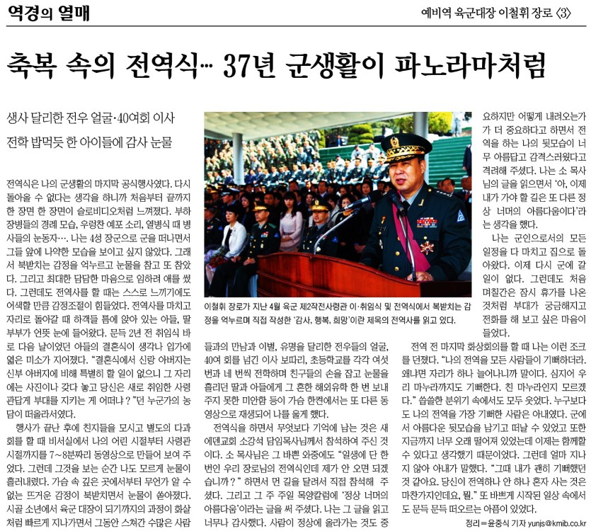 상하좌우 소통 국민일보「역경의 열매」<3> 축복 속의 전역식...37년 군생활이 파노라마처럼(2011.11.30)