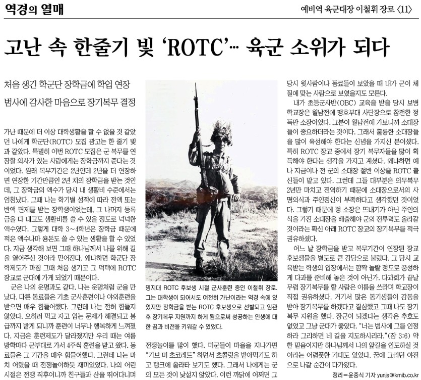 상하좌우 소통 국민일보「역경의 열매」<11> 고난 속 한줄기 빛 'ROTC'...육군 소위가 되다.(2011.12.12)