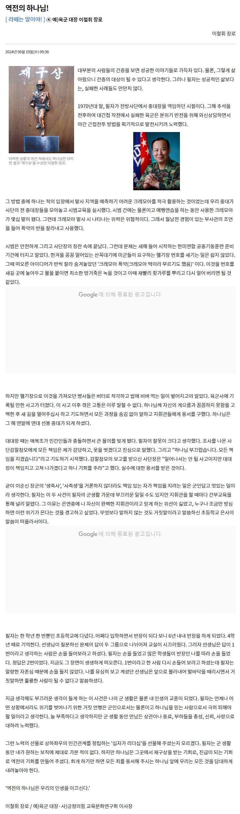 상하좌우 소통 한국기독공보> 이철휘장로 칼럼 [역전의 하나님!] 페이지 정보 작성자 최고관리자 작성일 24-07-03 10:46 조회 2,248회 댓글 0건 본문 한국기독공보>[라떼는 말이야!] 육군 대장 이철휘 장로 칼럼역전의 하나님! https://pckworld.com/article.php?aid=10270649508 이전글한국기독공보> 이철휘 장로 칼럼 [보은과 보훈 속 하나님의 사랑] 다음글한국기독공보> 이철휘장로 칼럼 [십자가를 통해 얻은 은혜와 지혜의 리더십] 목록 댓글목록 댓글목록 등록된 댓글이 없습니다.