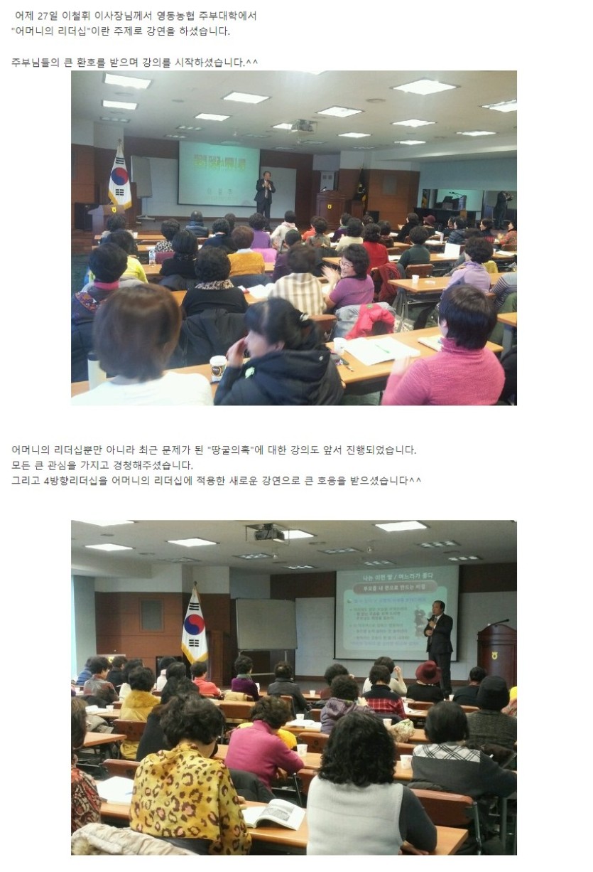 교육지원 [강연현장] 2015.01.27 영동농협 주부대학 강연 (2015.01.27)