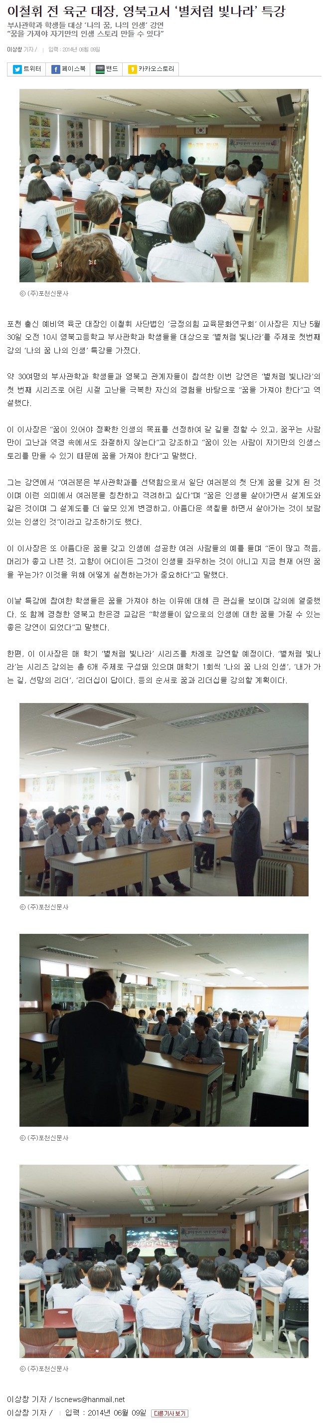 상하좌우 소통 언론이 보는 연구회 이철휘 전 육군 대장, 영북고서 ‘별처럼 빛나라’ 특강 (2014.06.12)